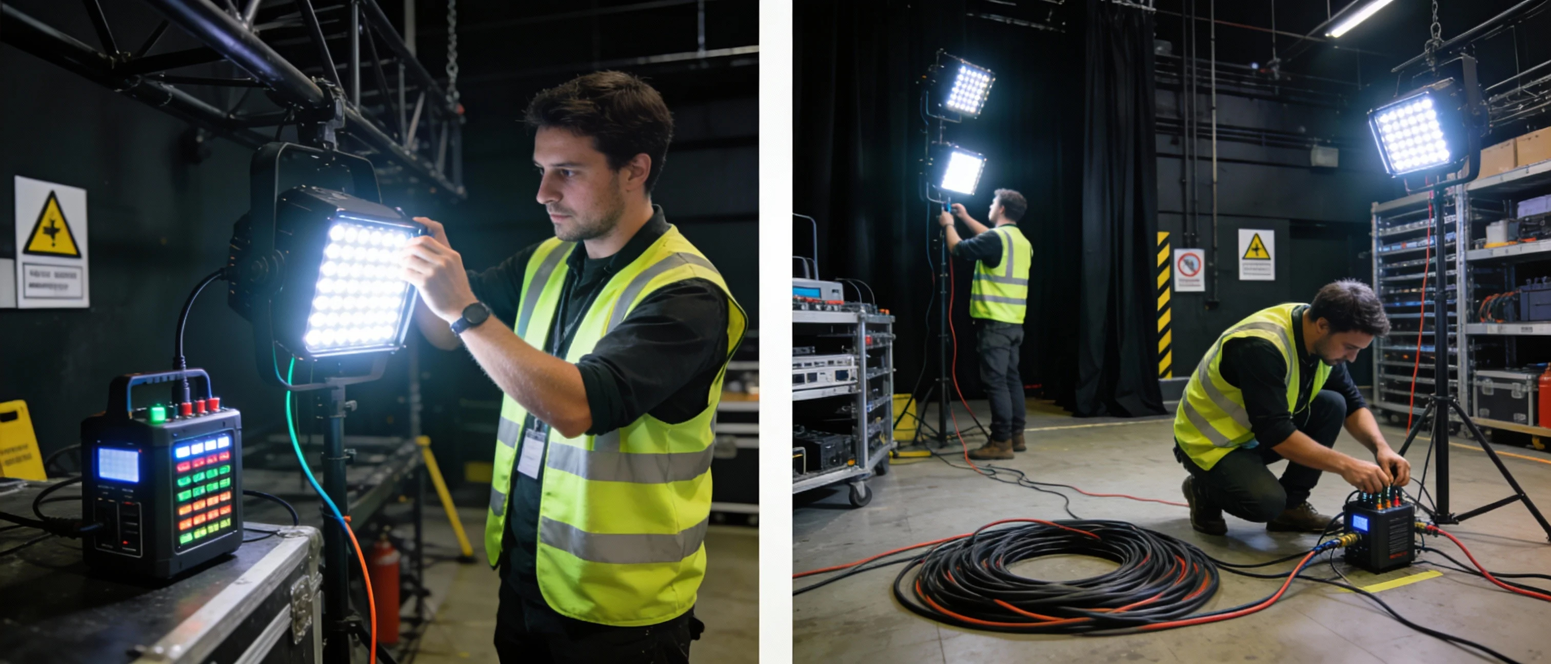 Emerging systems will use machine learning to predict power consumption based on programmed lighting cues, automatically adjusting brightness and effects to guarantee runtime through show end.